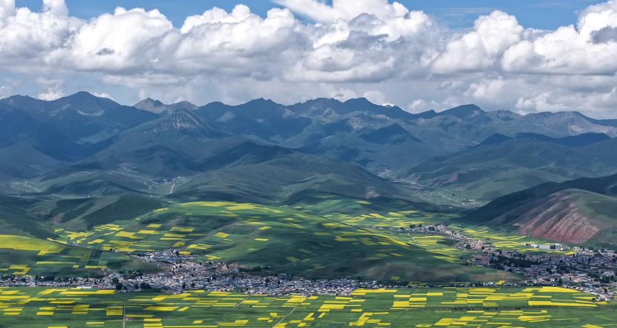 This aerial drone photo taken on July 18, 2025 shows a view in Menyuan Hui Autonomous County, northwest China's Qinghai Province. (Xinhua/Qi Zhiyue)