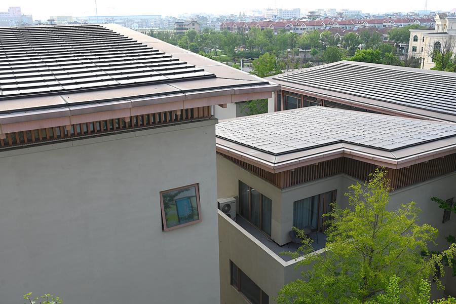 Rooftop photovoltaic panels are pictured at Meilin Village in Xiaoshan District of Hangzhou, east China's Zhejiang Province, on Aug. 4, 2025. (Xinhua/Mao Zhu)