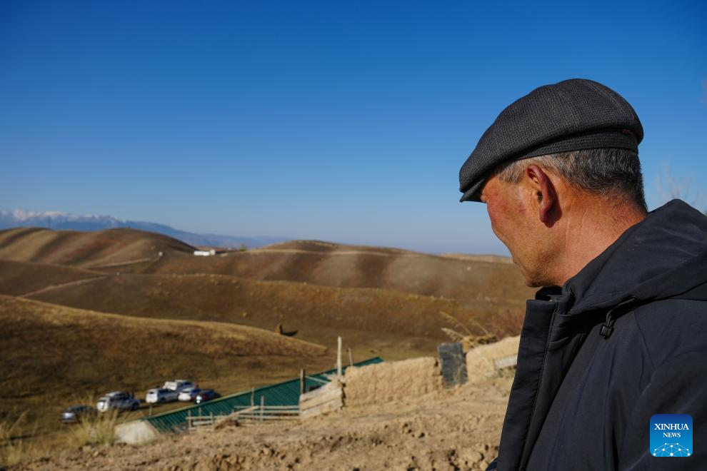 Father of the bride Kumusi Yesdawulti sees off her daughter in a vehicle procession in Karadala Township of Tekes County, northwest China's Xinjiang Uygur Autonomous Region, Oct. 11, 2025.(Xinhua/Xu Hongyan)