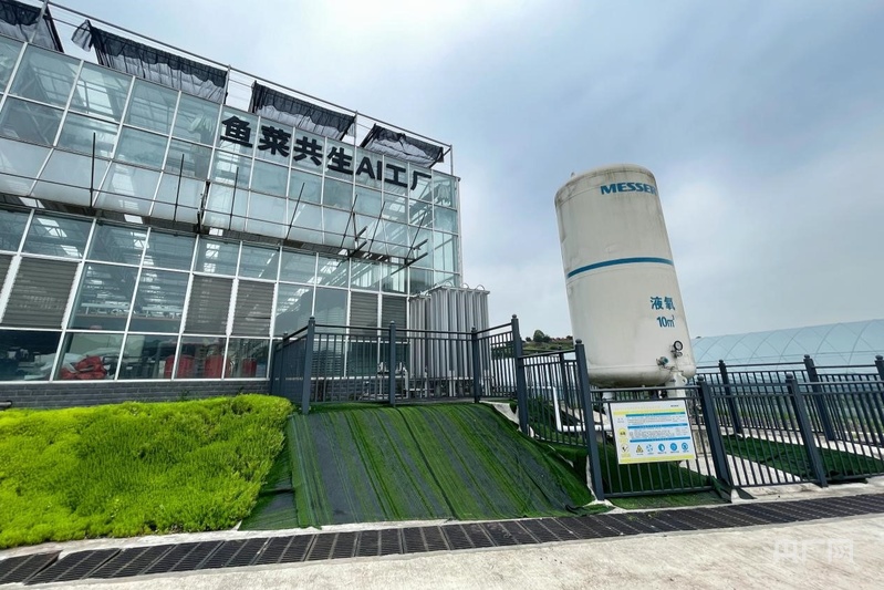 A view of the Chongqing Academy of Agricultural Sciences (CAAS) AI-powered aquaponics facility. The facility is located on the research academy’s campus in Chongqing municipality. (Photo by Chen Jing / China National Radio)