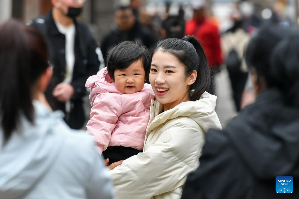 Tourists pose for photos at the Xinzhou ancient city in Xinzhou, north China's Shanxi Province, Oct. 21, 2025.(Xinhua/Cao Yang)
