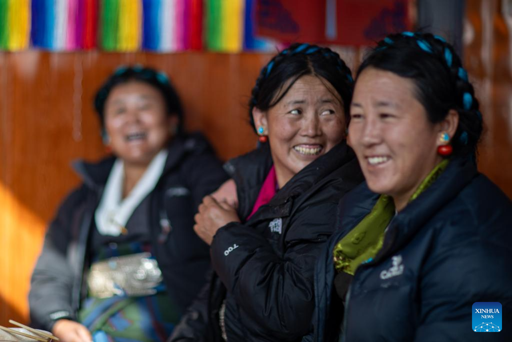 Villagers enjoy leisure time at a sweet tea house in Zimgag Village of Chamco Township, in Dingri County of Xigaze City, southwest China's Xizang Autonomous Region, on Jan. 5, 2026. In January 2025, a 6.8-magnitude earthquake struck Dingri County in the city of Xigaze, leveling thousands of houses.