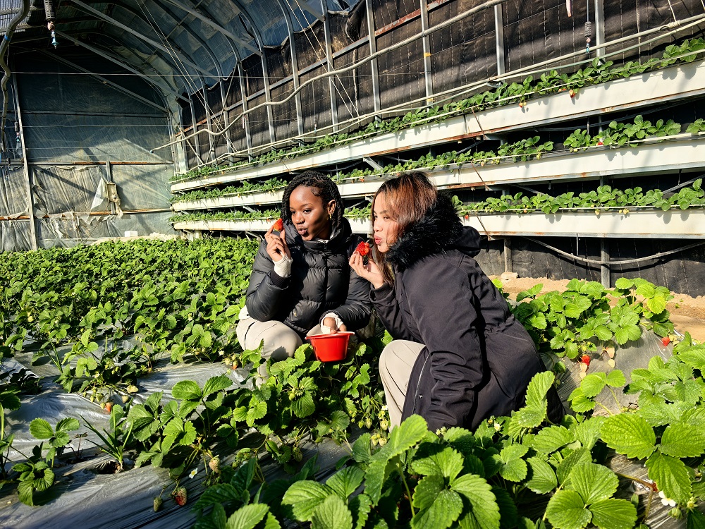 A group of students and faculty from Cornell University visit the Pengle Family Farm in Yixian county, Hebei, on Jan 10. [Photo by Zhao Yimeng/chinadaily.com.cn]
