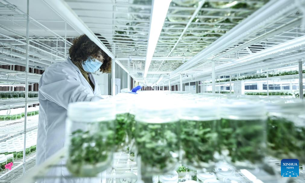 A staff member works at a breeding facility of a strawberry research institute in Donggang City of northeast China's Liaoning Province, Jan. 12, 2026. As China's largest strawberry production and export base, Donggang boasts a stable strawberry planting area of approximately 200,000 mu (about 13,333 hectares). More than 100,000 farming households in the city are engaged in strawberry cultivation.
