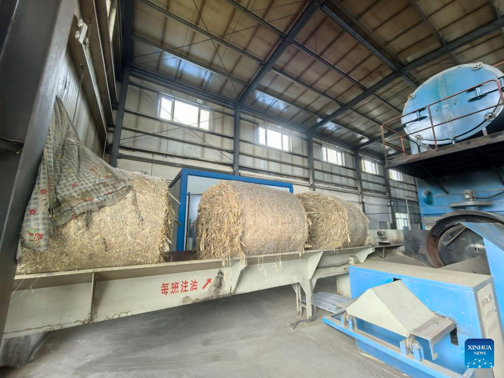This photo taken on July 25, 2025 shows bundled corn stalks kept at a biomass heating company in Fuxin Mongolian Autonomous County, northeast China's Liaoning Province. (Xinhua/Wu Jiangmin)