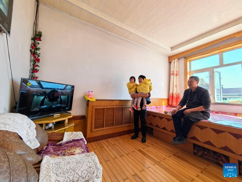 A family enjoys warmth enabled by an air-source heat pump at Moshifang Village of Zhuanghe City, northeast China's Liaoning Province, Nov. 1, 2025. (Xinhua)