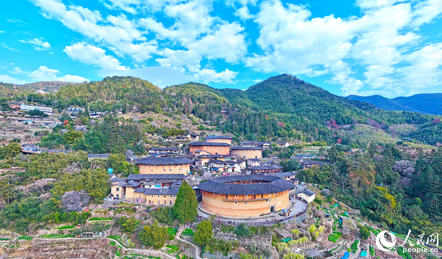 Photo shows the Tianluokeng Tulou Cluster in Nanjing county, Zhangzhou city, southeast China's Fujian Province. (People's Daily Online/Li Changqian)