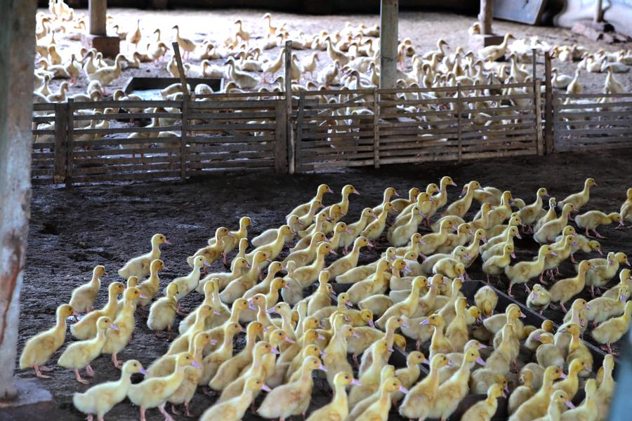 This photo taken on Nov. 13, 2025 shows ducks raised by Purwosono villagers at Purwosono Village, East Java, Indonesia. (Xinhua/Cen Yunpeng)