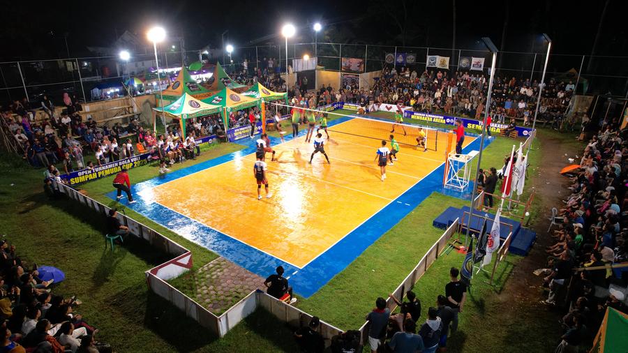 People watch a volleyball game at Purwosono Village, East Java, Indonesia, Nov. 13, 2025. (Xinhua/Cen Yunpeng)