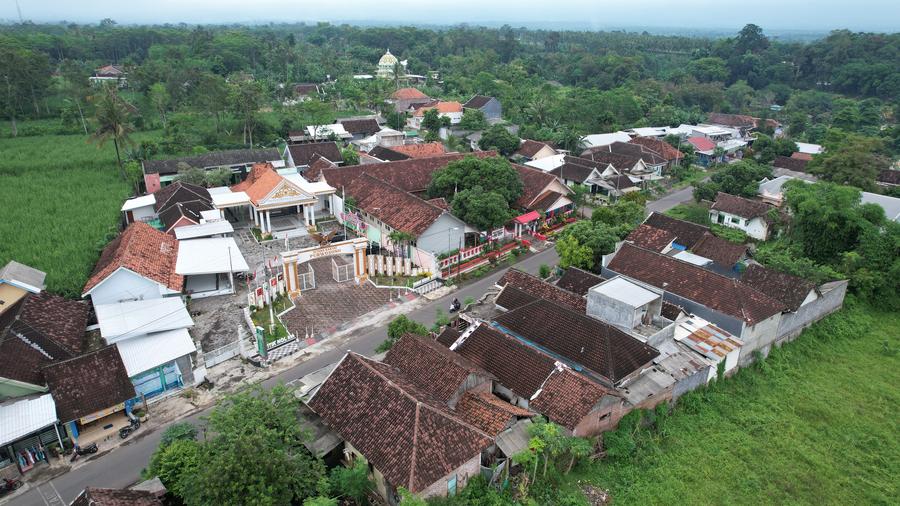 An aerial drone photo taken on Nov. 13, 2025 shows a view of Purwosono Village in East Java, Indonesia. (Xinhua/Cen Yunpeng)■