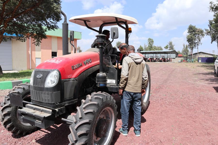 People check a tractor donated by Chinese agricultural experts in Addis Ababa, Ethiopia, Nov. 26, 2025. (Xinhua/Liu Fangqiang)