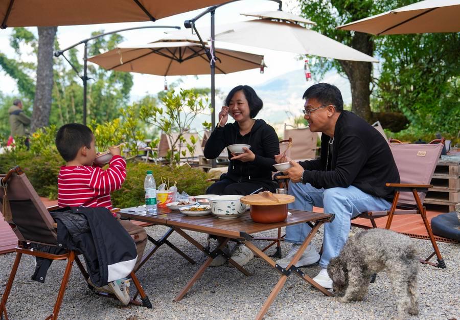Tourists have a meal in Manhai Village, Mojiang Hani Autonomous County of Pu'er City, southwest China's Yunnan Province, Dec. 20, 2025. (Xinhua/Chen Xinbo)