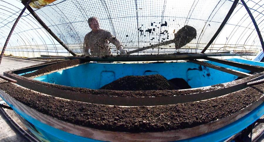 A farmer screens the seedling bed soil at a farming company under Beidahuang Group in northeast China's Heilongjiang Province, March 17, 2026. (Photo by Huang Yongxing/Xinhua)