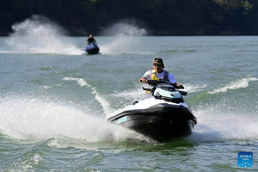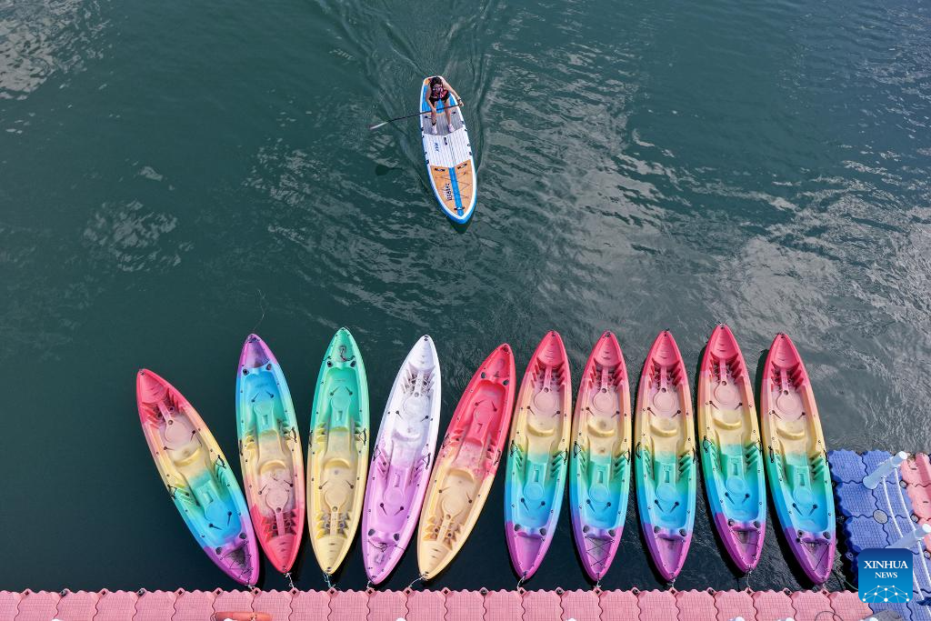 The town has established competitive, training, and experiential settings for a diverse range of open-water sports, and has proactively sought to host sports events and training programs. Additionally, it provides a host of cultural and tourism services, including catering and travel photography. These concerted efforts have created employment opportunities and diversified income sources for local villagers. (Xinhua/Du Xiaoyi)