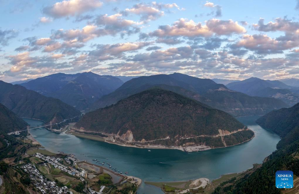 An aerial drone photo taken on Dec. 25, 2025 shows a water sports base on the Lancang River in Gonglang Town in Nanjian Yi Autonomous County, southwest China's Yunnan Province. In recent years, Gonglang Town, boasting an advantageous ecological environment and pleasant climate throughout the year, has actively revitalized the rural economy by developing water sports initiatives and promoting cultural tourism.